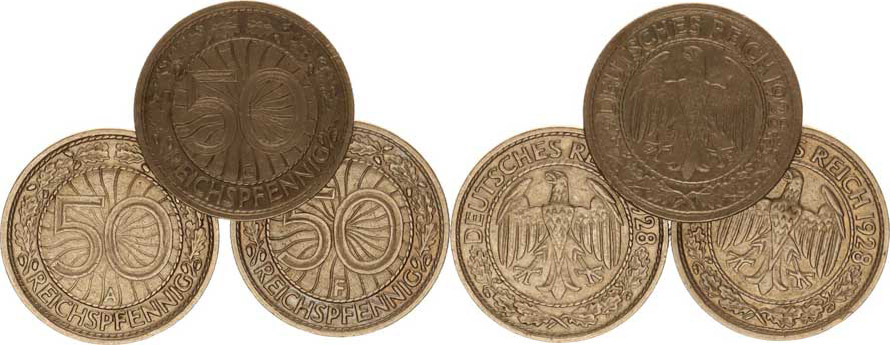 Výmarská republika (1918-1933), 50 Rpf. 1928 A, F, G KM 49 3 ks