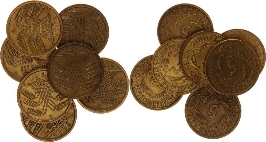 Výmarská republika (1918-1933), 5 Rpf. 1935 E, F, J, +1936 A, E, G, J KM 39 7 ks