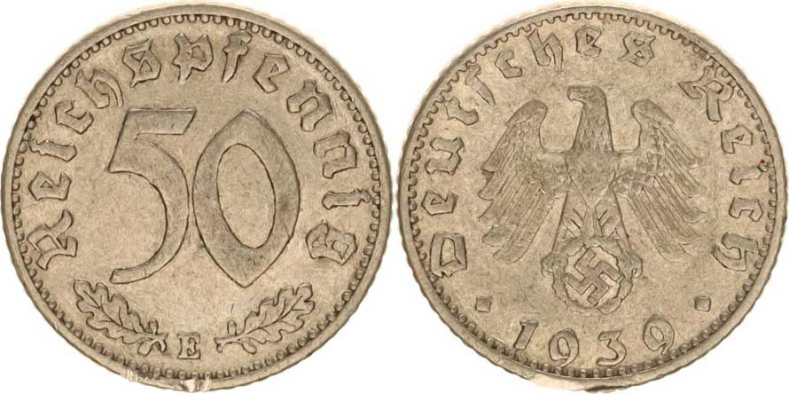 Německo - 3 říše, 1933-1945, 50 Rpf. 1939 E - Al KM 96, m. hr.