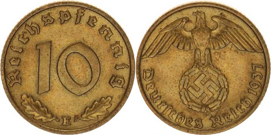 Německo - 3 říše, 1933-1945, 10 Rpf. 1937 E "R"