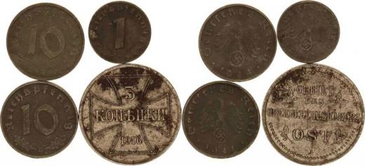 10 Rpf. 1941 B, 1944 B, +1 Rpf. 1943 B, +3 Kop. 1916 A (pro Výcho dní frontu) 4 ks, ox.