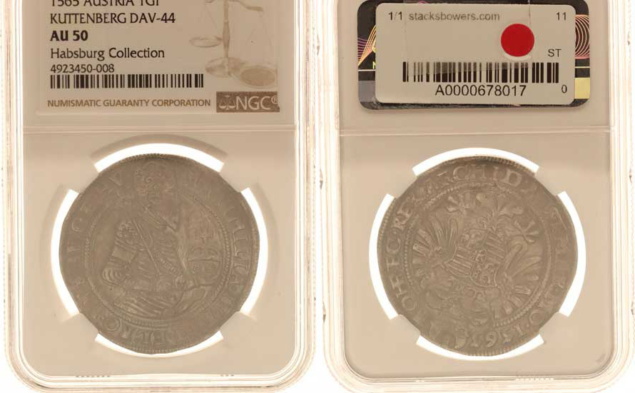 Zlatník (60 kr.) 1565, K.Hora-Ludvík Karel +Šatný var. MKČ 19 0 opis: AV. GE. HV. "RR" balení NGC - AU 50