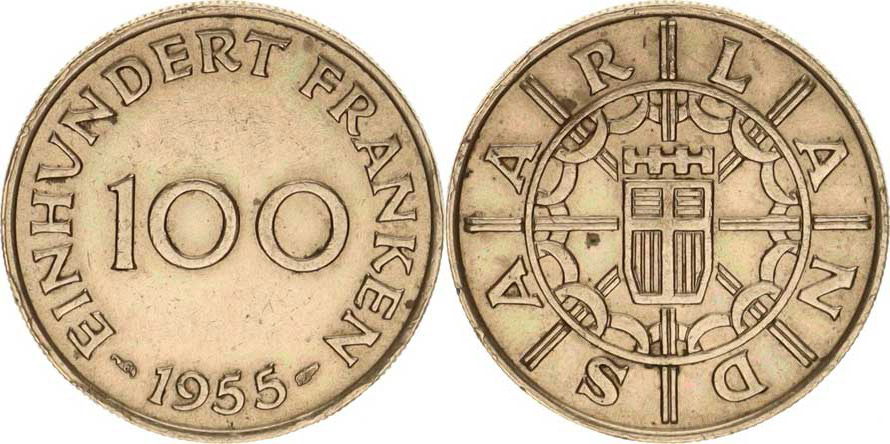 Saarland, 100 Franken 1955 KM 4 "R"