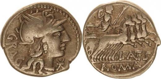 Denár, hlava Romy, za ní GRAG / Jupiter na quadrize LAES / ROMA Seaby 9; Cr.238/1 3,844 g