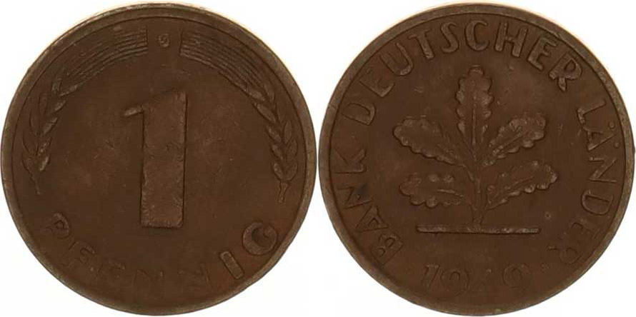 Německo - BRD (1949-), 1 Pfennig 1949 G - Bank Deutscher Länder KM A101