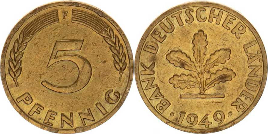 5 Pfennig 1949 F - Bank Deutscher Länder KM 102 , dr. rys.