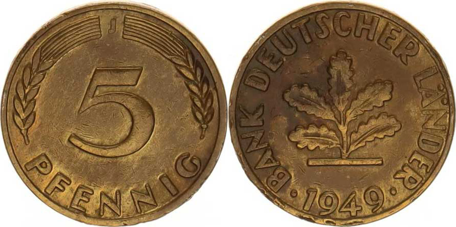5 Pfennig 1949 J - Bank Deutscher Länder KM 102, skvr.