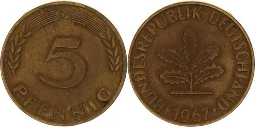 5 Pfennig 1967 G, tém.