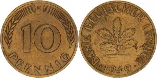 10 Pfennig 1949 D - Bank Deutscher Länder KM 103 , rysky, tém.