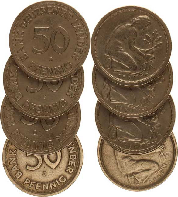 50 Pfennig 1949 D, F, G, J - Bank Deutscher Länder KM 104 4 ks