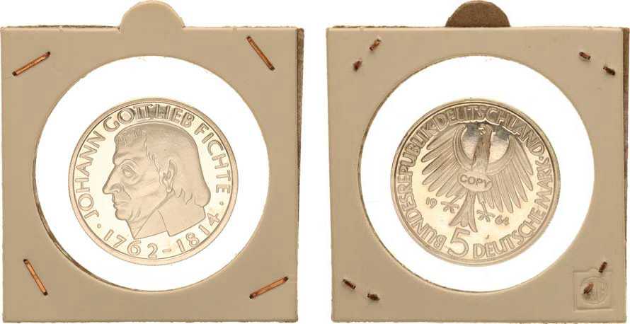 5 DM 1964 J - Fichte KM 118,1 zn. "COPY" Ag 1000