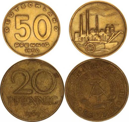 50 Pfennig 1950 A - bronz KM 4 "R" 20 Pfennig 1969 2 ks
