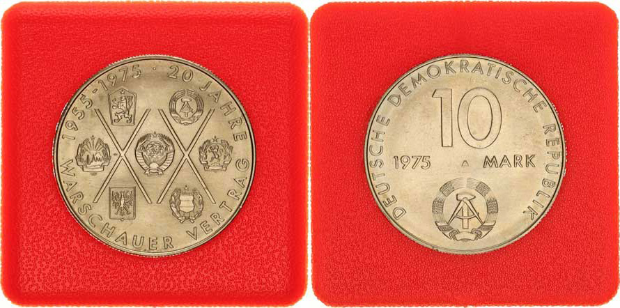 Německo - DDR (1949-1990), 10 M 1975 A - 20. výročí Varšavské smlouvy KM 58 +certifiká