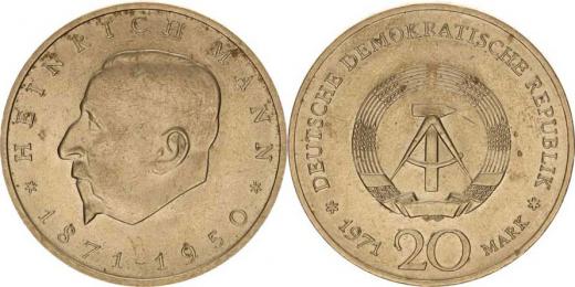 Německo - DDR (1949-1990), 20 M 1971 - Heinrich Mann KM 33