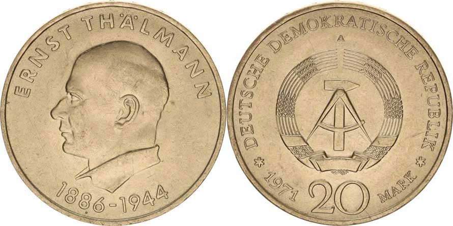 Německo - DDR (1949-1990), 20 M 1971 A - Ernst Thälmann KM 34