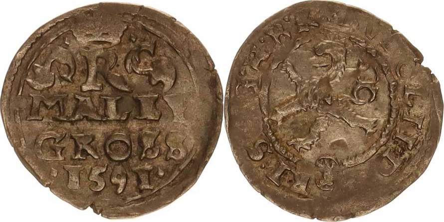 Malý groš 1591, K.Hora-Šatný HN 3 1,029 g