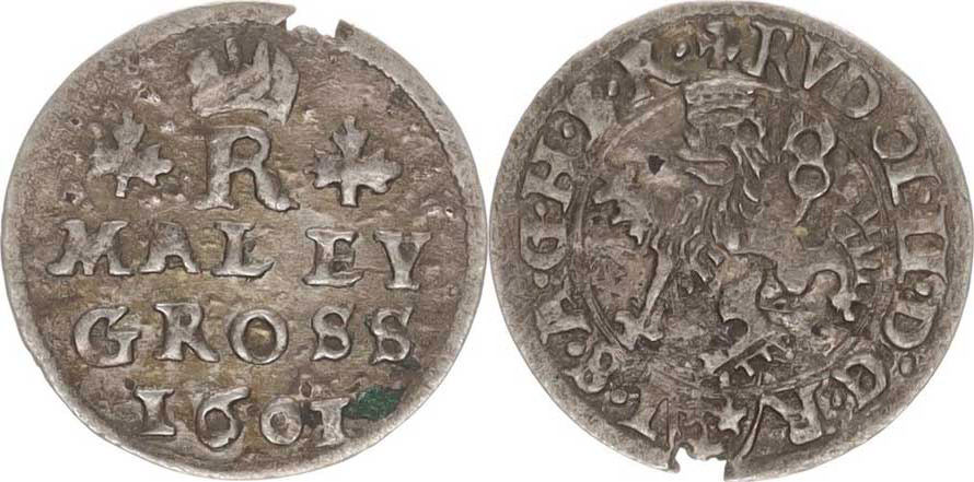 Rudolf II. (1576-1612), Malý groš 1601, Praha-Lasanz HN 42 zn. ve štítu "RR", hr.