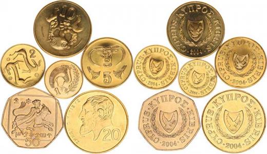 Kypr, republika (1960-), 1, 2, 5, 10, 20, 50 Cents 2004 6 ks