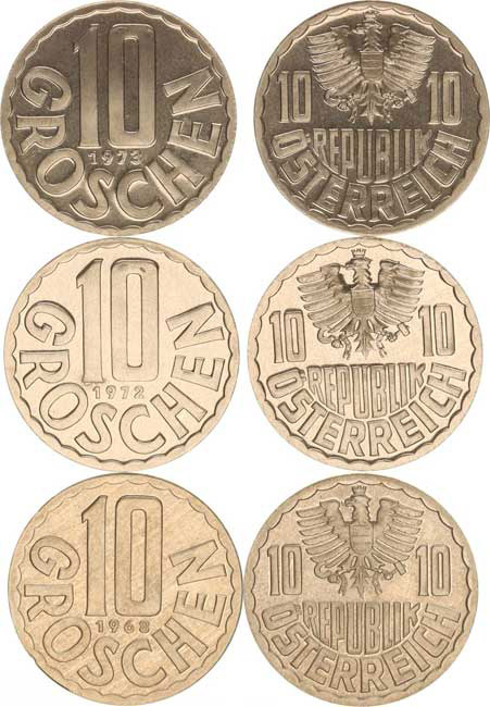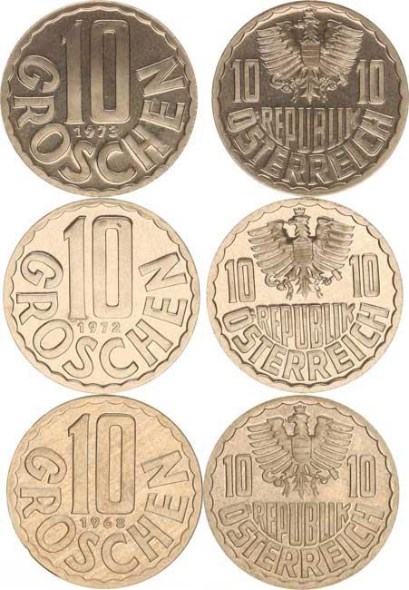 10 Groschen 1968, 1972, 1973 3 ks