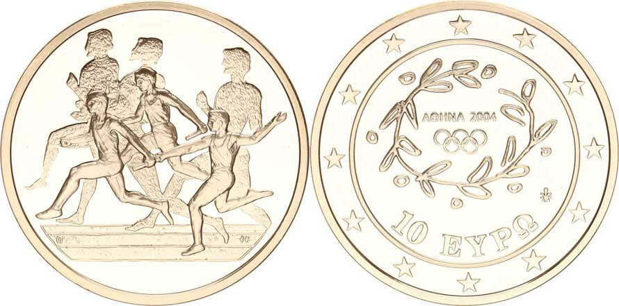 Řecko, (1973-), 10 Euro b.l. (2003) - OH 2004, štatetový běh KM 196 Ag 925