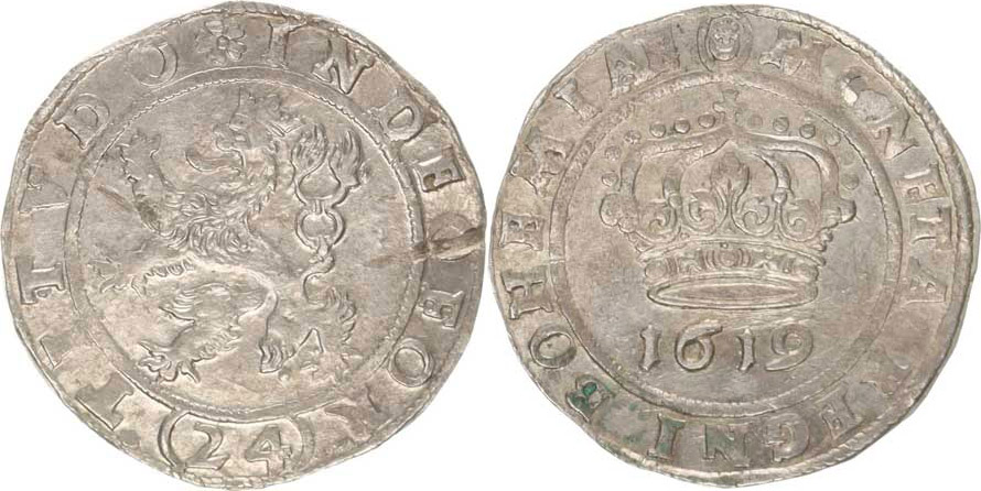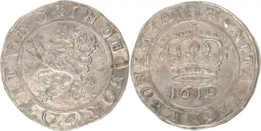 24 kr. 1619, Praha-Hübmer MKČ 568 var.: bez rozděl. teček v opise, škr.