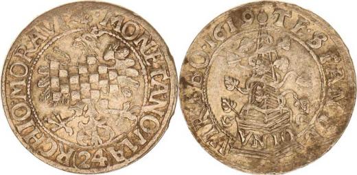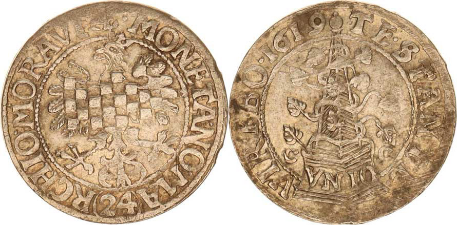 Moravské stavy (1619-1621), 24 kr. 1619 CC, Olomouc-Cantor MKČ 615 var.: tečka před MONETA