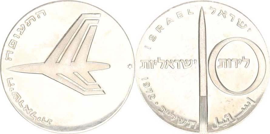 Israel, 10 Lirot 5732 /1972 AD/ - letectví KM 62 hvězdička za let