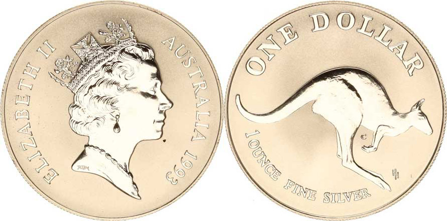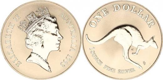 Austrálie, Alžběta II. (1952-), 1 Dollar 1993 C - Klokan KM 211.2 Ag 999 31,57 g