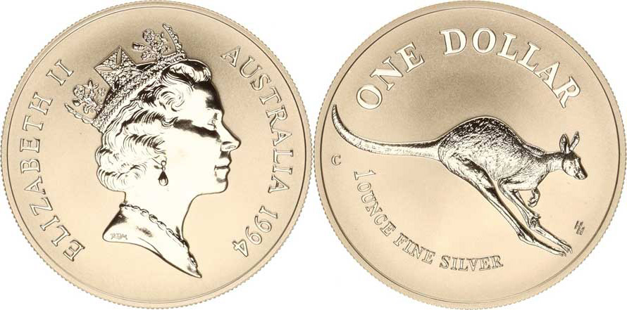 1 Dollar 1994 C - Klokan KM 263.1 Ag 999 31.635 g "R" kapsle