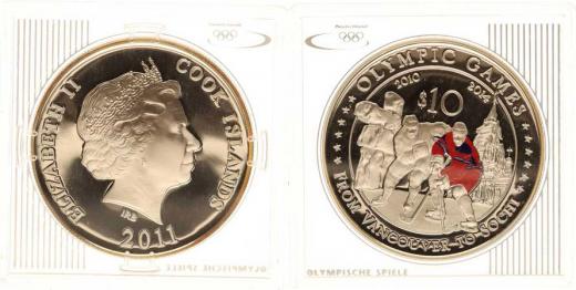 10 Dollars 2011 - OH 2010-2014 Vancouver-Sochi, hokej KM - , Ag (barevný dres hráče) plast. etue