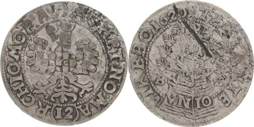 Moravské stavy (1619-1621), 12 kr. 1620 BZ, Olomouc-Zwirner MKČ 622 cyboražba VIRB BO 1620