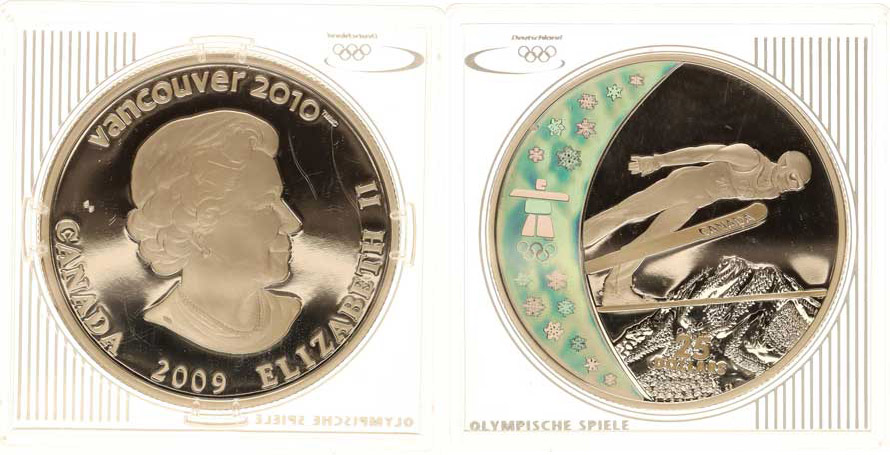 25 Dollars 2009 - OH 2010 Vancouver, skoky na lyžích KM 906 plastová etue +certifikát