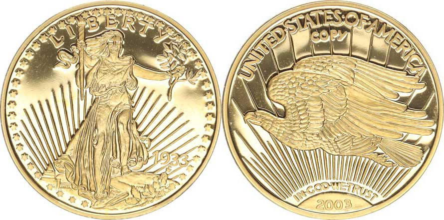 U.S.A., 20 Dollars 1933 "Replika" vydala fy Göde 2003 pozlac. Cu