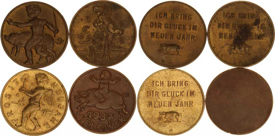 Německo - nouzovky a účel.známky, Novoročenky - 4 ks různé (staré) - Pro štěstí