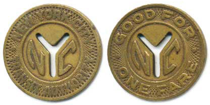 U.S.A. - nouzovky, žetony, New York - Transit Authority / Good for One Fare, malý Y token n