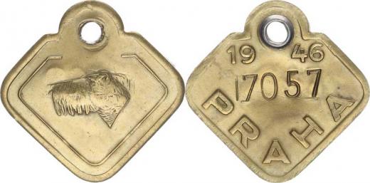 Psí známky, Praha - psí známka z roku 1946, č.7057 / hlava foxteriéra zleva,