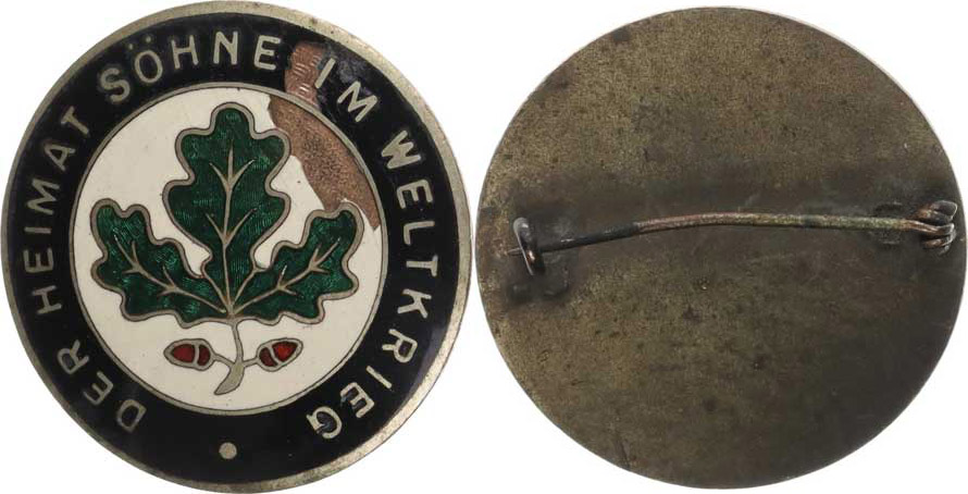 Der Heimat Söhne im Weltkrieg, b.l., dubový list s žaludy a opis smaltov. mosaz 35,5 mm zapínací spona, poškoz. smalt