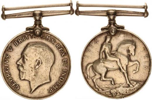 Anglie, George V. - Válečná medaile "1914-1918" Ag na hraně udělení: