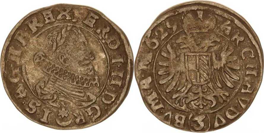 3 kr. 1629, Praha-Hübmer, tém.