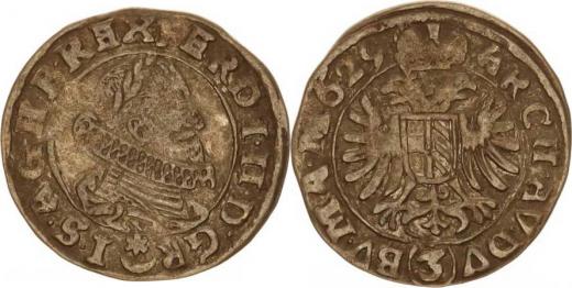 Ferdinand II. (1619-1637), 3 kr. 1629, Praha-Hübmer, tém.