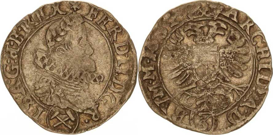 Ferdinand II. (1619-1637), 3 kr. 1634, Kutná Hora-Prunz MKČ 810 var.opisu: