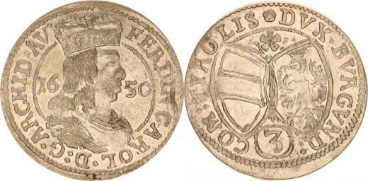Ferdinand Karel - arcivévoda (1632-1662), 3 kr. 1650 Tyroly, Hall