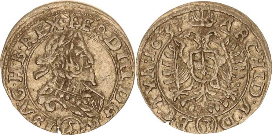 Ferdinand III. (1637-1657), 3 kr. 1637, Vídeň-Stadler 1,775 g, hr. ražbou, tém.