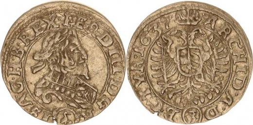 3 kr. 1637, Vídeň-Stadler 1,775 g, hr. ražbou, tém.