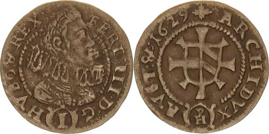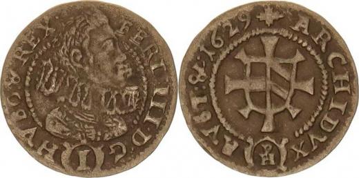 Ferdinand III. (1637-1657), 1 kr. 1629 PH, Kladsko-Hema jako MKČ 1344 ale AVST: & .1629
