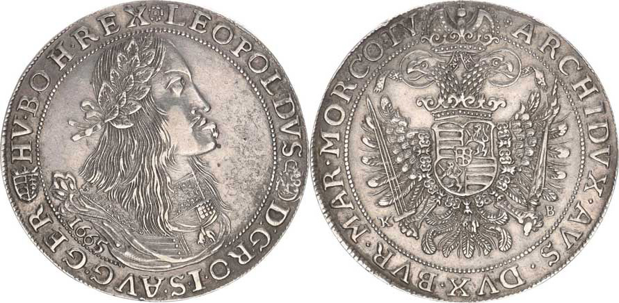 Leopold I. (1657-1705), Tolar 1665 KB - datace pod poprsím "RR" Husz. 1367