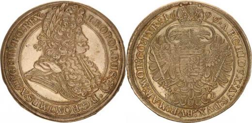 Leopold I. (1657-1705), Tolar 1696 KB Husz. 1374 var.: v celém opisu rv. dvojité ro