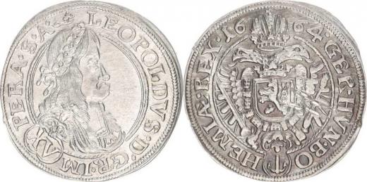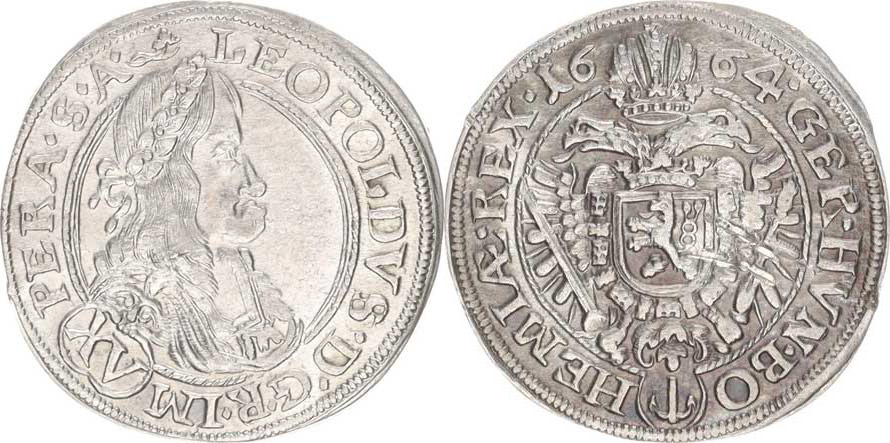 Leopold I. (1657-1705), XV kr. 1664, Praha-Margalík Hol.64,3.1 "R", škr. v rv.