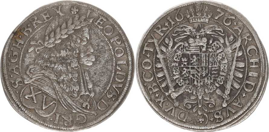 XV kr. 1676 Vídeň Hol.76.1,3 var. A, patina, tém.