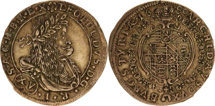 XV kr. 1680 I-A-N, Štýrsko-Nowak Hol. 80,1.1 "RR" , patina